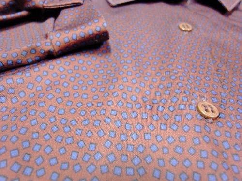 小さな四角が散りばめられたユニークな柄のレトロシャツです。