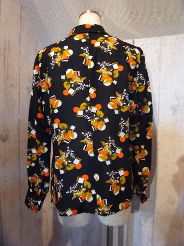 色:黒地にビビッドオレンジ・マスタード色等の模様